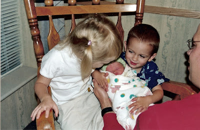 18 days after she was born we took this picture of her with Kyla's baby doll...
